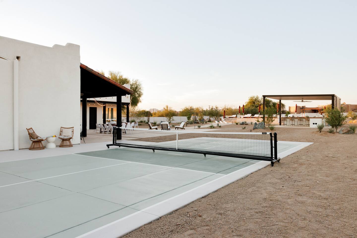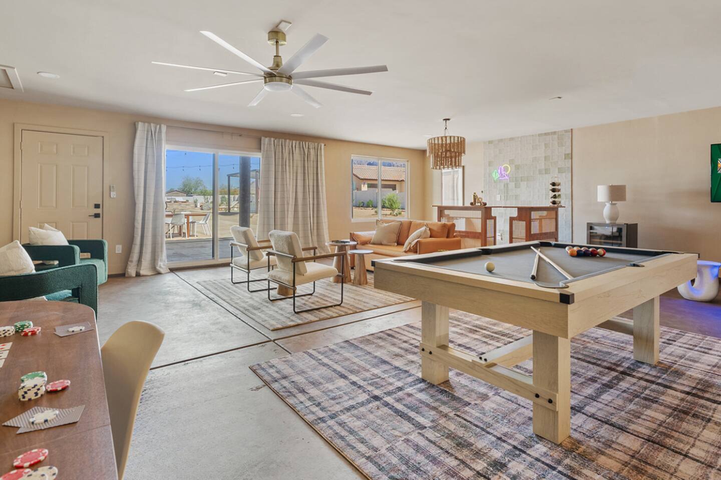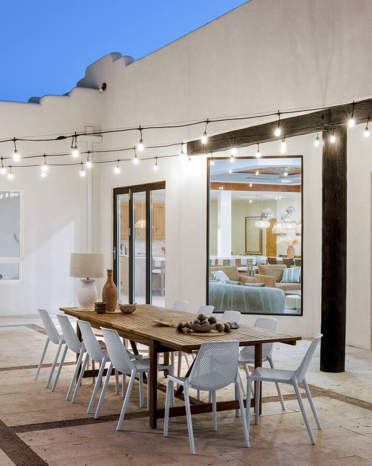 ๐ Sleeps 16+ Every space is designed for comfort, connection, and celebration. Whether you're getting ready with bridesmaids, or bringing the family together, The Vistas delivers space, luxury, and flexibility. โ 5 bedrooms + theater room + game room โ King beds in 4 rooms, queen in 1, sleeper sofas throughout โ Premium mattresses, soft linens, blackout curtains โ Smart TVs in 5 rooms โ Closet & drawer space, full-length mirrors, reading lamps ๐ณ Gourmet Kitchen + Oversized Dining The kitchen is fully stocked and ready for home-cooked meals, or catered events. โ Air fryer, blender, toaster, oven, stove โ Pour-over + Keurig coffee makers โ Fridge, dishwasher, microwave, garbage disposal โ Kidsโ dinnerware, trays, glassware, and cooking essentials โ Seating for 12 at the dining table + 9 at the kitchen island ๐งโโ๏ธ Resort-Style Backyard Step into a private desert oasis, perfect for relaxing, celebrating, or simply enjoying the Arizona sunshine. โ Heated pool (no extra charge) โ 10-person hot tub with mountain views โ Outdoor lounge with 75โ smart TV โ Outdoor dining table for 24 โ Pickleball court, putting green โ Cornhole, Connect 4, Jenga, bocce ball, and more โ Sun loungers, hanging swing chairs, umbrellas โ Gas BBQ grill + outdoor kitchen setup ๐ฎ Game Room + Theater = Memory-Making Nights โ Golden Tee arcade game โ Pool table + foosball โ Huge theater room with comfy couches and smart TV โ Card and board games for all ages โ Sleeper sofas in game & theater rooms for extra guests ๐ Prime Location + Epic Views โ 7 minutes to The Paseo โ 5 minutes to The Views at Superstition โ Nearby Superstition Mountain trailheads โ 30 minutes to Canyon Lake for boating & picnics โ Quiet, scenic surroundings with stunning sunsets ๐ก Amenities Summary โ Fast Wi-Fi throughout โ Smart TVs in multiple rooms โ Coffee bar with complimentary starter K-cups โ Full laundry room with washer/dryer โ Extra towels for pool and hot tub โ Toiletries, hair dryers, and welcome guide โ Local vendor recommendations for weddings & in-home services ๐ House Rules & Info โ Max 15 cars in personal driveway โ no shuttles, trailers, or RVs โ Quiet hours 10 PM โ 7 AM โ No unauthorized parties or extra guests โค๏ธ From Our Guests: โEven better than the photos. Plenty of room. Weโll be booking againโevery year!โ โ Kendall โWe hiked Superstition right from the house. The pickleball court was a hit. Canโt say enough good things!โ โ Sherri โจ Whether you're walking down the aisle at The Paseo, prepping for a family reunion, or escaping to the desert for a luxury staycation, The Vistas is built to elevate your stay. ๐ Availability fills fast โ especially during wedding season. ๐ฉ Message us now to secure your dates and start planning something unforgettable.
