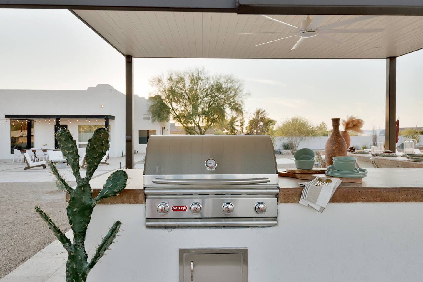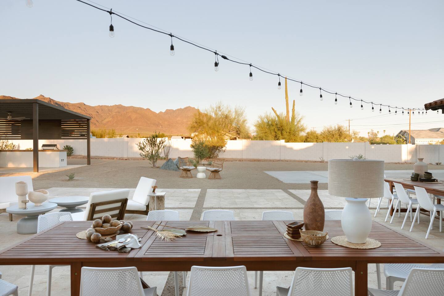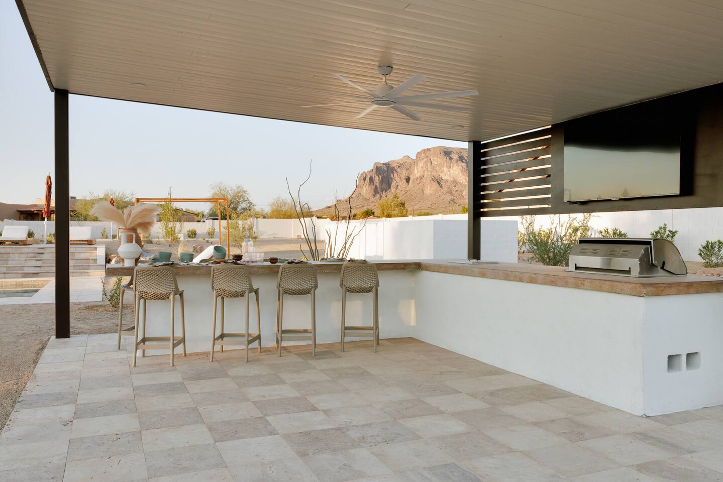 ๐ Sleeps 16+ Every space is designed for comfort, connection, and celebration. Whether you're getting ready with bridesmaids, or bringing the family together, The Vistas delivers space, luxury, and flexibility. โ 5 bedrooms + theater room + game room โ King beds in 4 rooms, queen in 1, sleeper sofas throughout โ Premium mattresses, soft linens, blackout curtains โ Smart TVs in 5 rooms โ Closet & drawer space, full-length mirrors, reading lamps ๐ณ Gourmet Kitchen + Oversized Dining The kitchen is fully stocked and ready for home-cooked meals, or catered events. โ Air fryer, blender, toaster, oven, stove โ Pour-over + Keurig coffee makers โ Fridge, dishwasher, microwave, garbage disposal โ Kidsโ dinnerware, trays, glassware, and cooking essentials โ Seating for 12 at the dining table + 9 at the kitchen island ๐งโโ๏ธ Resort-Style Backyard Step into a private desert oasis, perfect for relaxing, celebrating, or simply enjoying the Arizona sunshine. โ Heated pool (no extra charge) โ 10-person hot tub with mountain views โ Outdoor lounge with 75โ smart TV โ Outdoor dining table for 24 โ Pickleball court, putting green โ Cornhole, Connect 4, Jenga, bocce ball, and more โ Sun loungers, hanging swing chairs, umbrellas โ Gas BBQ grill + outdoor kitchen setup ๐ฎ Game Room + Theater = Memory-Making Nights โ Golden Tee arcade game โ Pool table + foosball โ Huge theater room with comfy couches and smart TV โ Card and board games for all ages โ Sleeper sofas in game & theater rooms for extra guests ๐ Prime Location + Epic Views โ 7 minutes to The Paseo โ 5 minutes to The Views at Superstition โ Nearby Superstition Mountain trailheads โ 30 minutes to Canyon Lake for boating & picnics โ Quiet, scenic surroundings with stunning sunsets ๐ก Amenities Summary โ Fast Wi-Fi throughout โ Smart TVs in multiple rooms โ Coffee bar with complimentary starter K-cups โ Full laundry room with washer/dryer โ Extra towels for pool and hot tub โ Toiletries, hair dryers, and welcome guide โ Local vendor recommendations for weddings & in-home services ๐ House Rules & Info โ Max 15 cars in personal driveway โ no shuttles, trailers, or RVs โ Quiet hours 10 PM โ 7 AM โ No unauthorized parties or extra guests โค๏ธ From Our Guests: โEven better than the photos. Plenty of room. Weโll be booking againโevery year!โ โ Kendall โWe hiked Superstition right from the house. The pickleball court was a hit. Canโt say enough good things!โ โ Sherri โจ Whether you're walking down the aisle at The Paseo, prepping for a family reunion, or escaping to the desert for a luxury staycation, The Vistas is built to elevate your stay. ๐ Availability fills fast โ especially during wedding season. ๐ฉ Message us now to secure your dates and start planning something unforgettable.