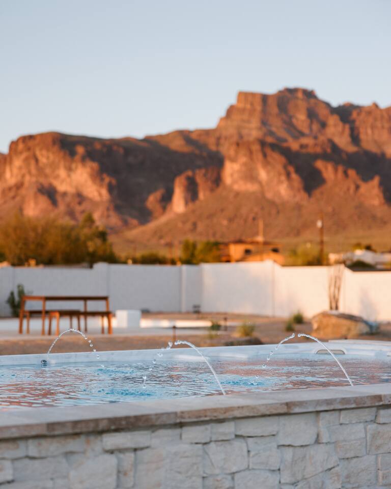 โจ The Vistas โ Scenic Desert Oasis Welcome to The Vistas, your private 5-bedroom retreat with luxury amenities, mountain views, and space to unwind, and celebrate lifeโs biggest moments in style. ๐ Just minutes from Arizonaโs most iconic wedding venues, The Paseo & The Views ๐ Soak under the stars in a 10-person hot tub ๐ Play pickleball, Golden Tee, or pool with your crew ๐ Relax with stunning views of the Superstition Mountains Enjoy your private 1 acre property with parking on site.