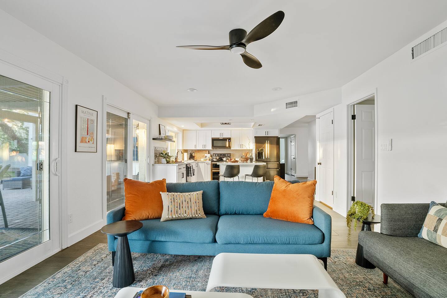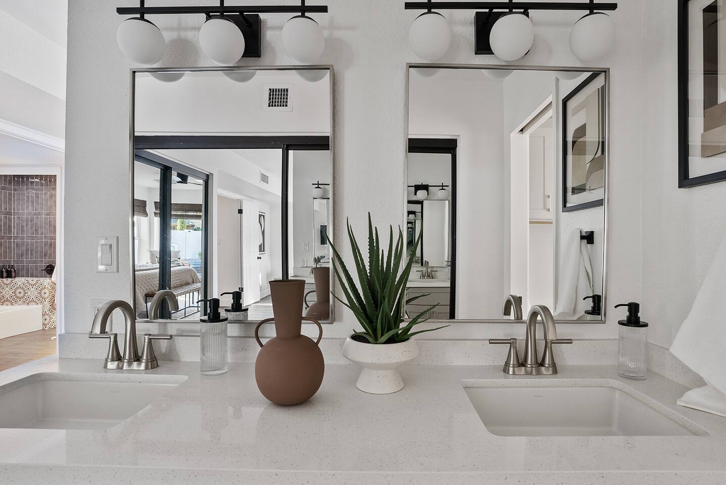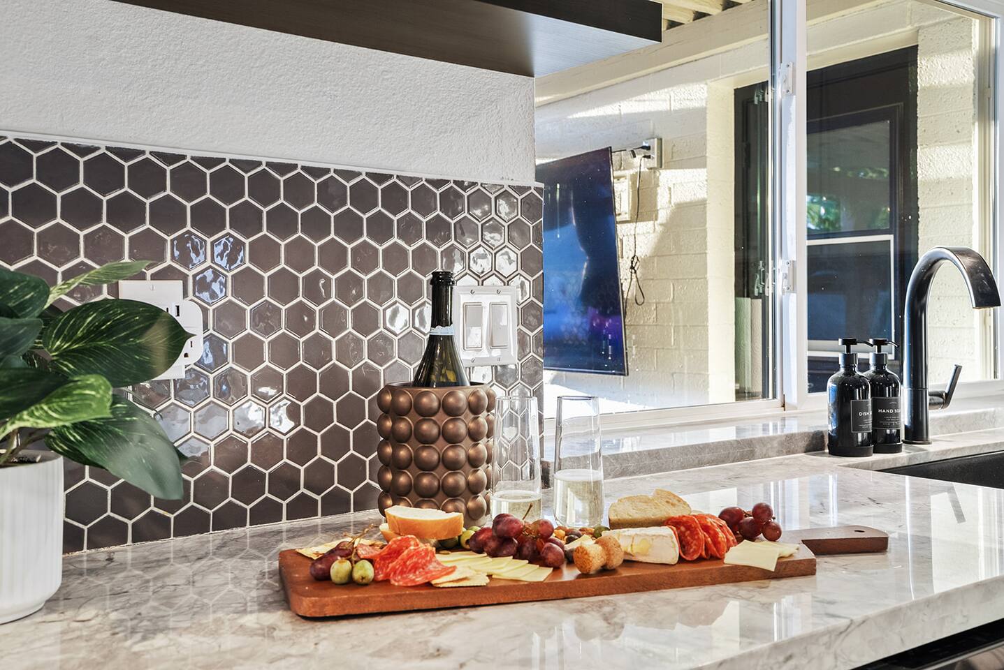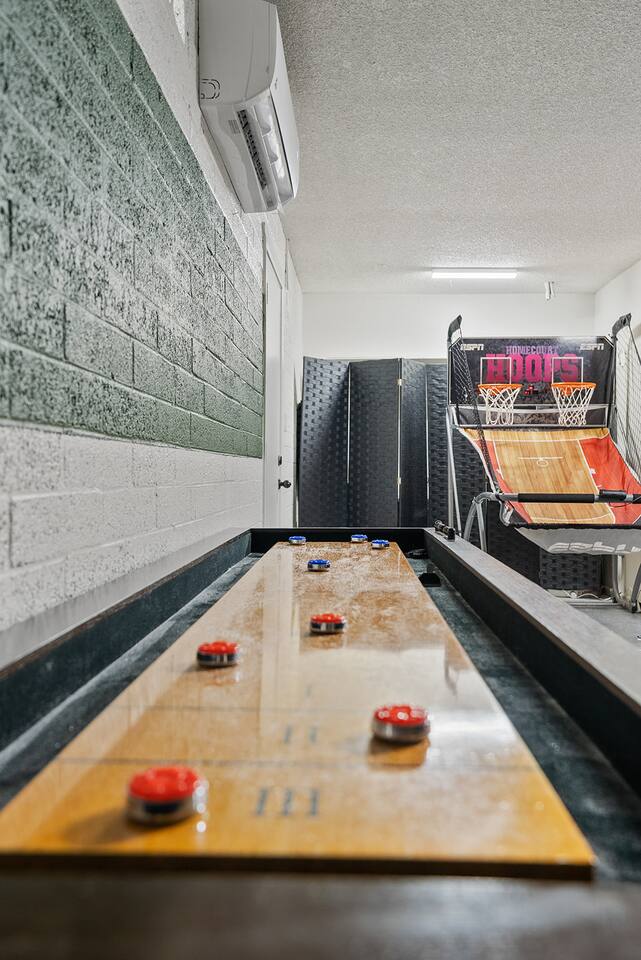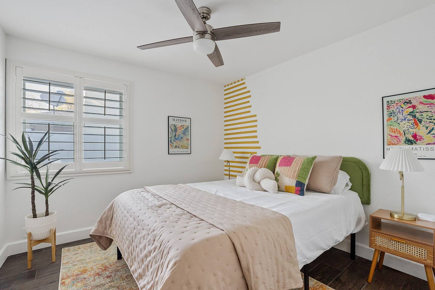 ✔ Heated Pool + Hot Tub ✔ Backyard Movie Nights (75” TV!) ✔ Giant Yard Games, Putting Green & Outdoor Dining ✔ Game Room w/ Shuffleboard, Pool Table+ Giant Checkers + Basketball Shootout ✔ Kid-friendly touches (bunk beds, toys, baby gear) ✔ Treadmill, Keurig, Pour-over, Fast Wi-Fi & Smart TVs in every room Inside, you'll find a bright, modern home designed for comfort and connection — with a luxury kitchen, cozy living room, and beds so comfy even adults rave about the sheets. ☀️ The Backyard This is the wow factor — and where you’ll spend 90% of your time! Dive into the heated pool, soak in the spa, grill up dinner, then catch a movie under the stars. There's room for everyone to spread out and relax, play, or cheer on the big game. 🏓 Games Galore Pool Table, shuffleboard, classic arcade, cornhole, Connect 4, Jenga — rain or shine, there's always something fun to do. 🛏 4 Bedrooms | Sleeps up to 10 • King Suite w/ ensuite bath • 2 Queen Bedrooms • 1 Bunk Room (twin over full) — perfect for kiddos! 👶 Family Friendly High chair, pack ’n play, baby monitor, kids dinnerware — all the essentials are covered so you can pack light and play hard. 🍽 Fully Stocked Kitchen From pancake mornings to taco nights, the kitchen is loaded with everything you need (and probably forgot you’d want): air fryer, blender, Fellow pour-over, spices, baking gear, and more. 📍Location, Location Dobson Ranch is a peaceful, established neighborhood with tree-lined streets, walking paths, and community amenities like pickleball. You’re just: • 5 min to groceries, restaurants & parks • 10 min to Chandler & Downtown Gilbert • 15 min to Spring Training & Tempe • 20 min to Sky Harbor & Old Town Scottsdale 🧼 Clean & Thoughtful Guests love our attention to detail — from the sparkling pool to the plush linens to the easy check-in and responsive hosting. We've thought of everything so you don’t have to. Whether you're escaping the cold, planning a family reunion, or just need some desert sunshine — this Mesa retreat is ready when you are.