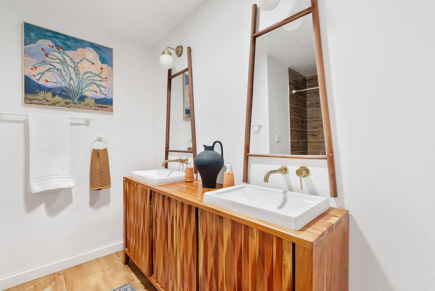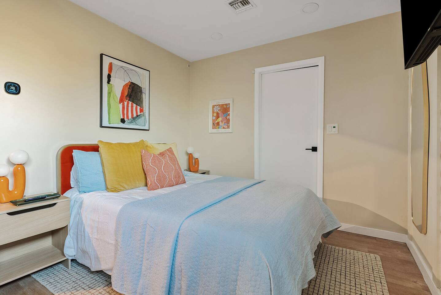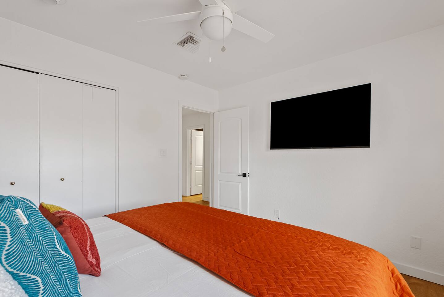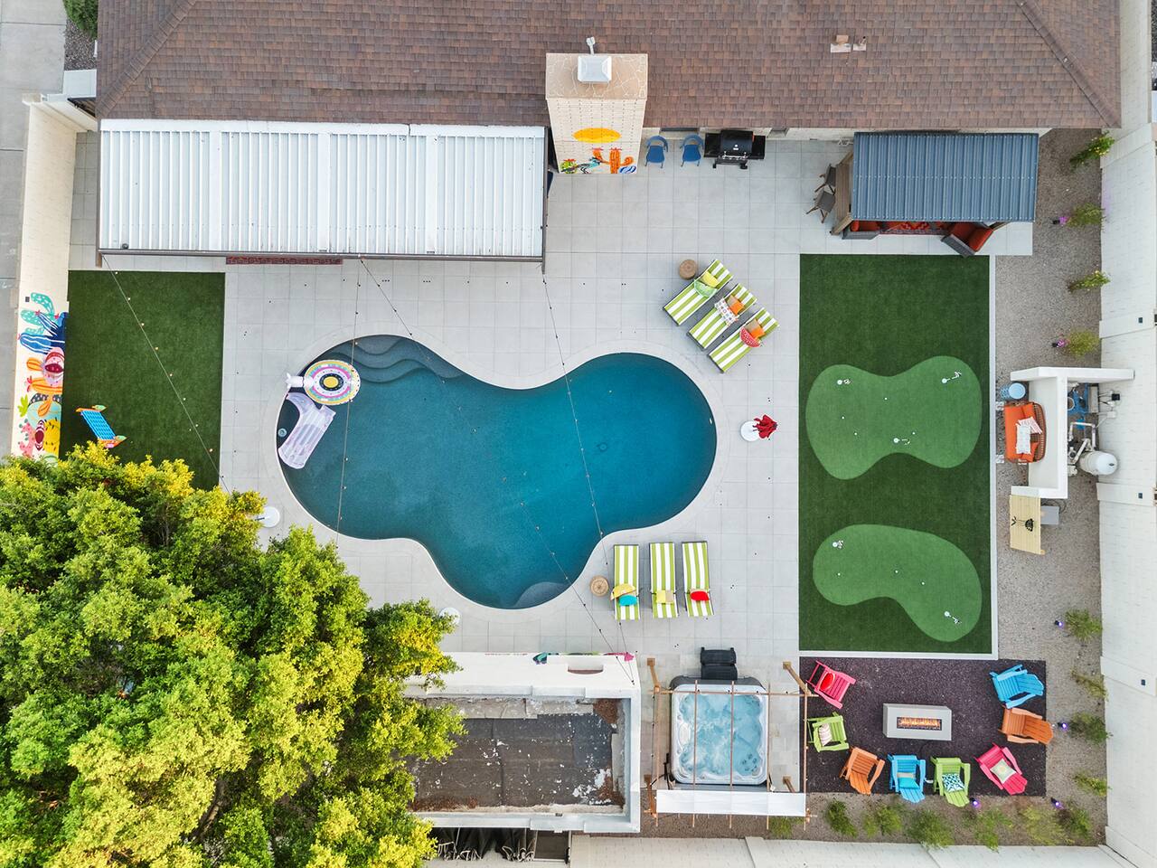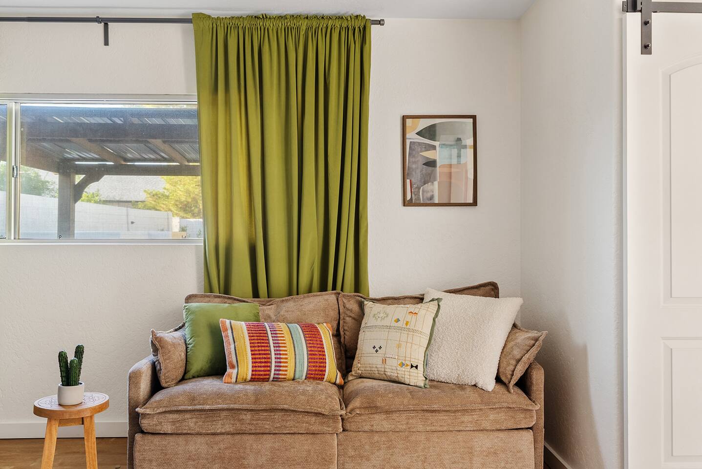 ❤️What Guests Love Most 🌴 Backyard Paradise – Free-heated pool, oversized hot tub, putting green, fire-pit circle with rainbow Adirondacks, & 75" outdoor TV under twinkling bistro lights 🎮 Epic Game Room – Pool table, NBA Jam & Galaga arcades, board-game nook, Smart TV, and a bold wall mural for Insta-worthy pics 🛏 Sleep-Happy Layout – 5 bedrooms (4 kings!) 2 pullout sofas 🍳 Chef-Approved Kitchen – Quartz island, double oven, air fryer, stock-piled spice drawer, & separate coffee/tea bar with Keurig + kettle + pour-over 👶 Travel-Light Perks – High chair, pack ’n play, monitor, kids’ dinnerware & pool toys 📍 Central & Quiet – 20 mins to Scottsdale nightlife, 10–15 mins to Legacy Sports, golf, parks, groceries & wedding venues 🛏 Sleeping Arrangements (Sleeps up to 16) Bedroom 1 – King Bed • ensuite bathroom • sleeper sofa & workspace • Smart TV (sleeps 4) Bedroom 2 – King Bed • Smart TV (sleeps 2) Bedroom 3 – King Bed • Smart TV (sleeps 2) Bedroom 4 – King Bed • Smart TV (sleeps 2) Bedroom 5 – 2 Queen Beds • ensuite bathroom (sleeps 4) Game Room – sleeper sofa (sleeps 2) 🏝 Backyard Highlights Heated, sparkling pool (included) + hot tub BBQ & cactus mural by a local artist Putting green & yard games – cornhole, Giant Connect 4 Fire-pit lounge ringed by colorful chairs for sunset s’mores Shaded patio with a 65" Smart TV & dining for 10 Plenty of umbrellas for mid-day chill 🎯 Game Room & Arcade Full-size pool table NBA Jam + Galaga arcade cabinets Comfy sectional + 65" Smart TV (stream all the things) 🍽 Chef-Ready Kitchen 5-burner range, double oven, air fryer & microwave Large island (seats 3) + dining table (seats 8) under woven pendants Keurig, drip pot, pour-over, frother & starter pods/tea Full spice library, oils, quality knives & kid-safe dinnerware Walk-in pantry stocked with blender, slow cooker, Instant Pot, air fryer & more 📍 Location, Location 25 mins → Legacy Sports Complex & wedding venues 15 mins → Downtown Gilbert eateries & craft brews 20 mins → Old Town Scottsdale nightlife & shopping Groceries, parks, hiking & golf ≤ 5 mins 👋 Good to Know Superhost-level comms & local tips Gig-speed Wi-Fi & Smart TVs everywhere In-home laundry, iron, detergent & supplies Driveway + easy street parking (no garage access) No pets, parties, or indoor smoking — quiet hours 10 pm–7 am