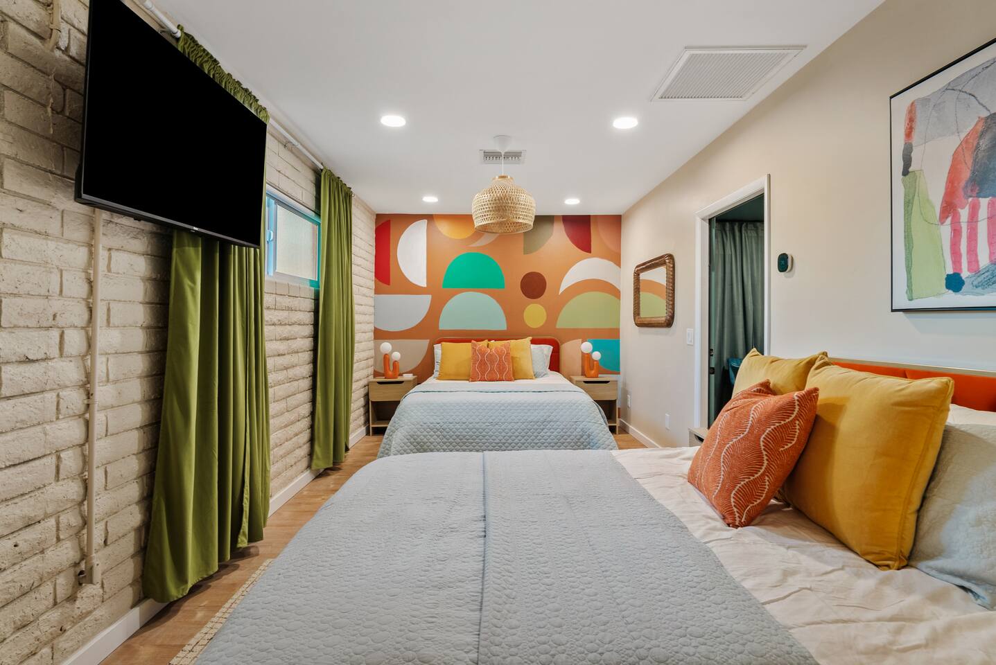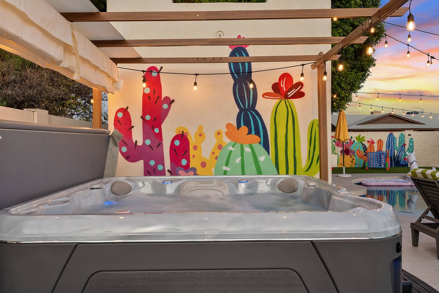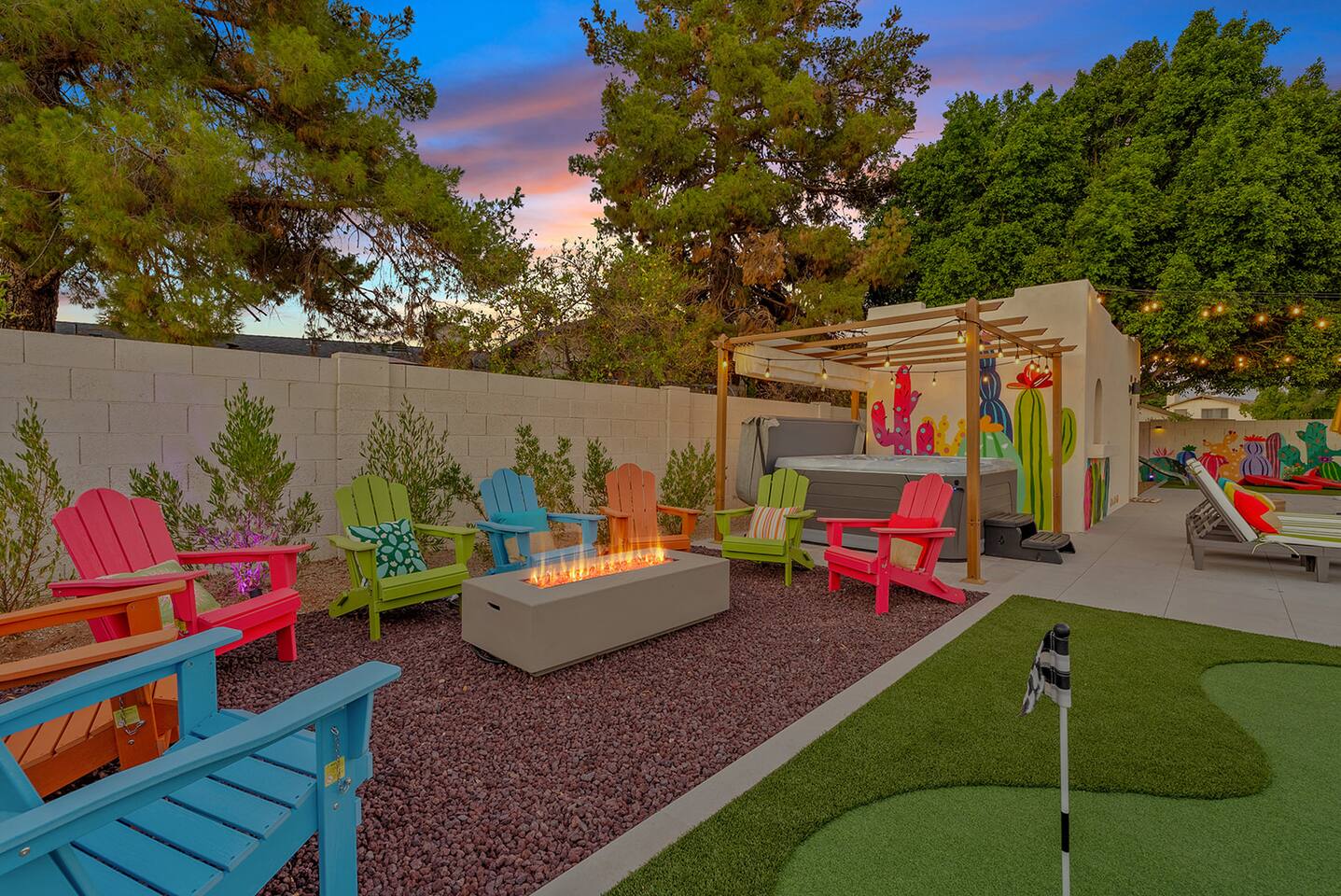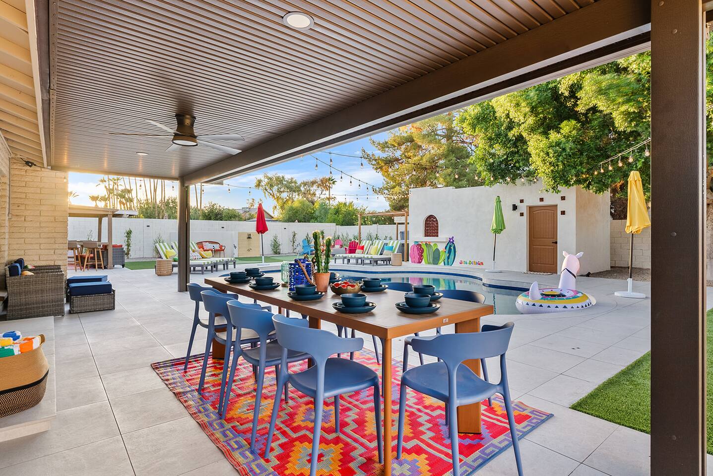 🌵 The Oasis – Mesa’s Color-Splashed Cactus Retreat From the hand-painted cactus fireplace to the resort-style backyard, this 5-bed | 3-bath home is made for memory-making. Spread out, reconnect, and let every generation claim a favorite hang-out. Whether that’s the chef’s kitchen, the heated pool framed by string lights, or the muraled arcade-packed game room.