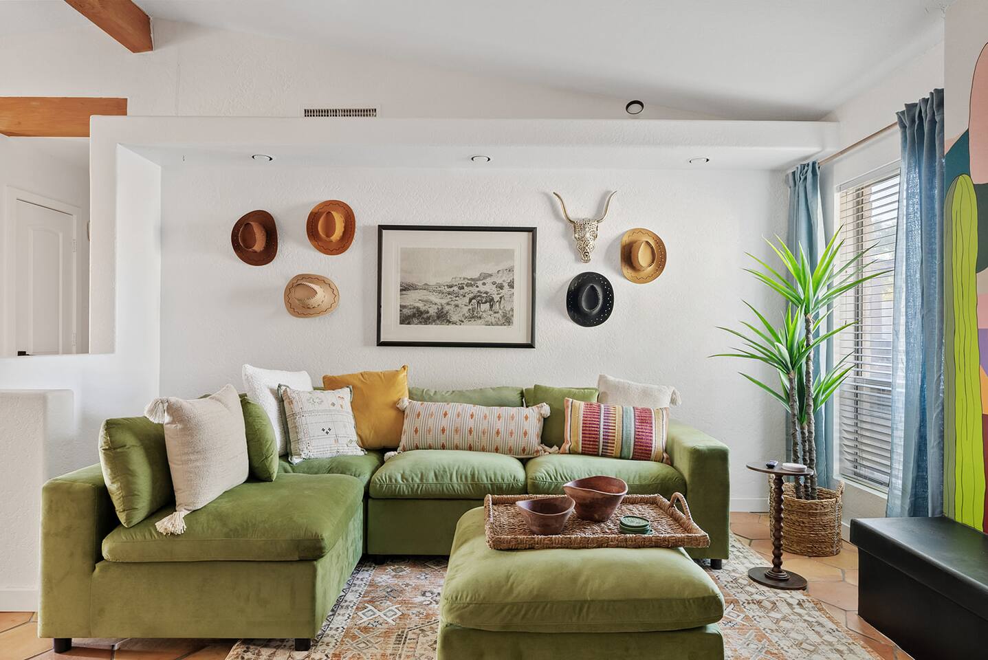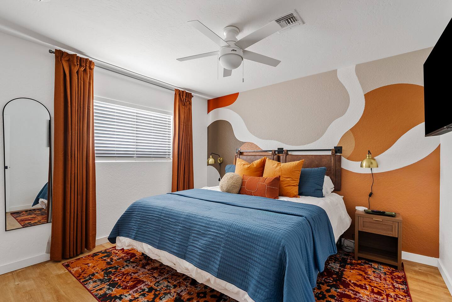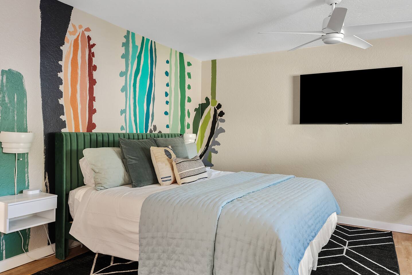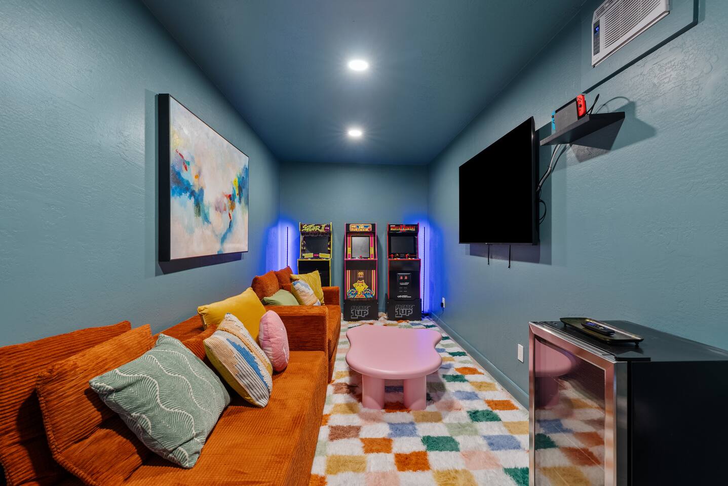 🌵 The Oasis – Mesa’s Color-Splashed Cactus Retreat From the hand-painted cactus fireplace to the resort-style backyard, this 5-bed | 3-bath home is made for memory-making. Spread out, reconnect, and let every generation claim a favorite hang-out. Whether that’s the chef’s kitchen, the heated pool framed by string lights, or the muraled arcade-packed game room.